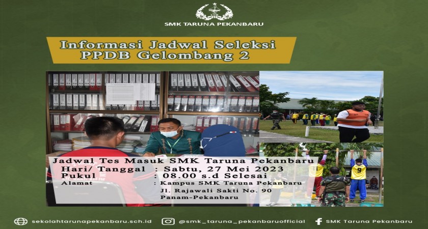 Pekanbaru-Seleksi Masuk SMK Taruna Pekanbaru T.P 2023-2024 untuk gelombang 2 telah dijadwalkan.
